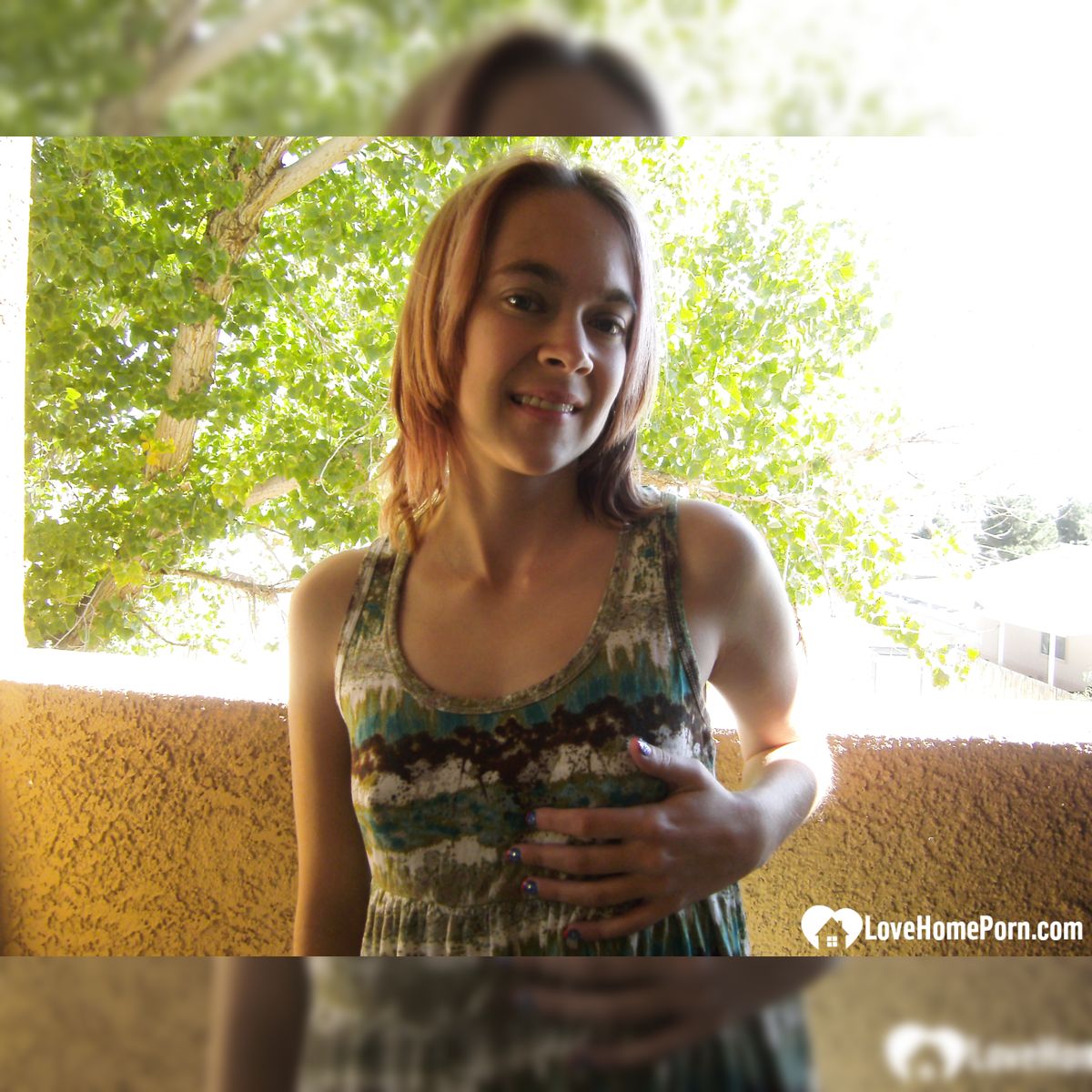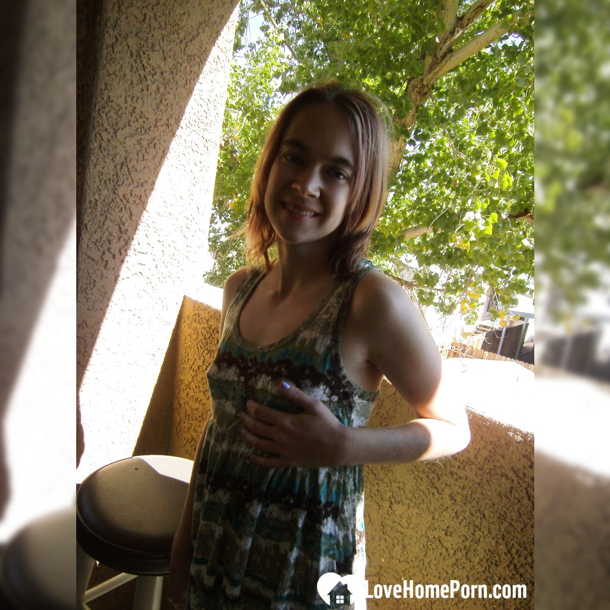 Sensual girl pleases herself on the balcony